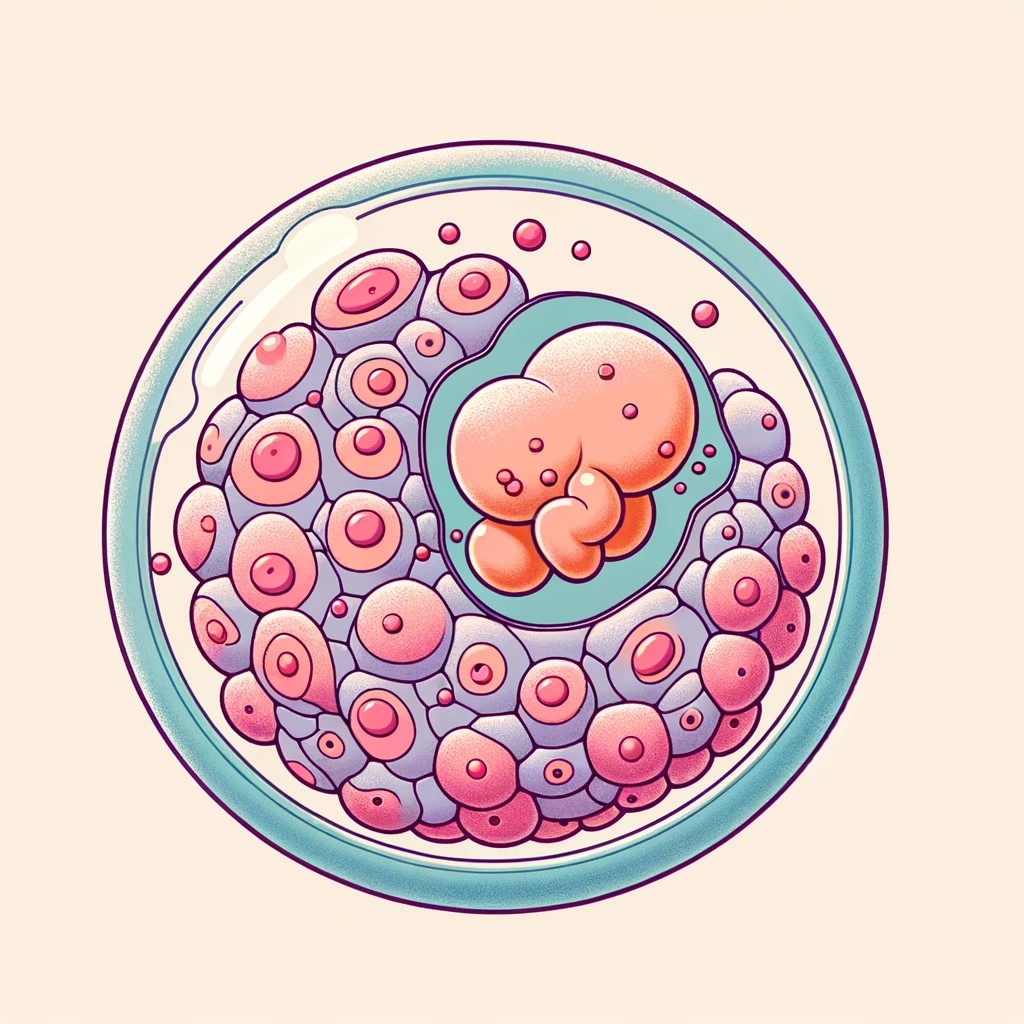 長達39週的期待和努力,A小姐總算迎來了自己的寶寶。原本一屋兩人三餐四季的日子雖然也不錯,但一屋三人還是熱鬧一點。 手術當天A小姐聽到寶寶的洪亮哭聲,眼淚瞬間流了下來,我明白這樣的情緒,連我都感動不已。如果你也在經歷這段艱難的求子路,我們的中山醫學大學生殖醫學中心團隊 將會陪伴你走過每一步。 PS.因案例圖有點血腥,不太適合放上來,嘗試用現下流行的AI生成圖片分享給大家。鑲嵌型胚胎(右圖)的圖片生成很簡單,我只是直接叫他生成胚胎圖片,要包括內細胞團及滋養成細胞,但是第一次生成的圖片太複雜,而且有點恐怖,修正過後就有現在的圖片了,我覺得蠻可愛啦!